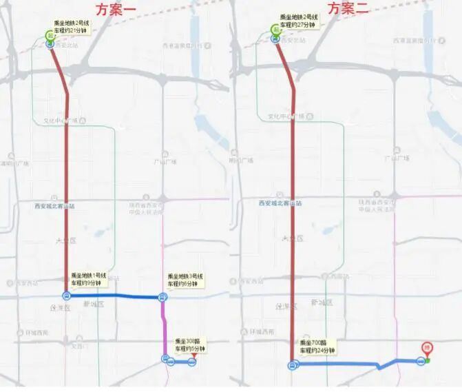 2) 西安北站—>世纪金源大饭店